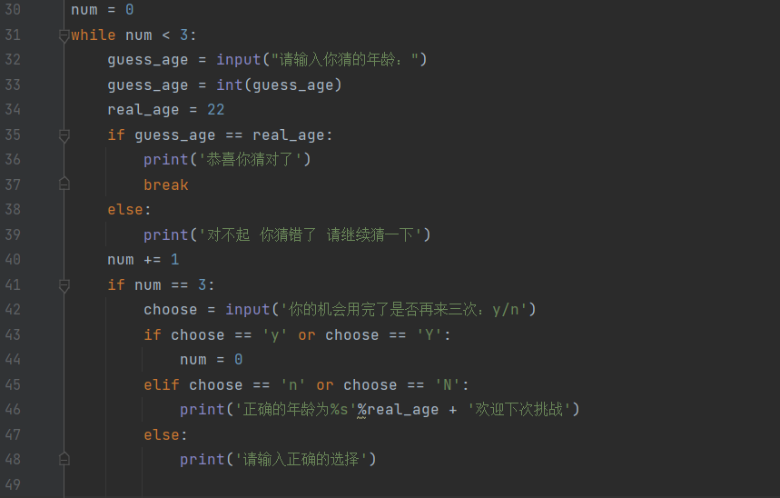 #注:如果上一行代码的结尾为冒号:直接enter下一行默认缩进