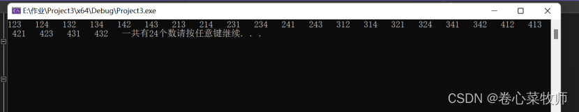 以上就是开放羽毛最近收集整理的关于C语言程序作业——有1、2、3、4个数字,能组成多少个互不相同且无重复数字的三位数?都是多少?的全部内容,更多相关C语言程序作业——有1、2、3、4个数字,能组成多少个互不相同且无重复数字内容请搜索靠谱客的其他文章。