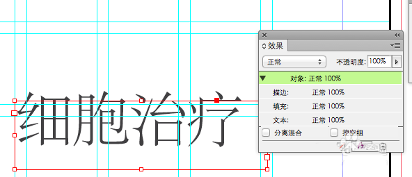 3、然后我们用左侧工具栏中的选择工具选择我们要增加效果的文字,下图这种方式是不对的,我们要选择的是文本框,不是文字。(这一点一定要记住)然后我们执行窗口>效果,打开效果窗口。