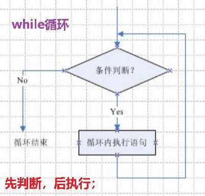 - while: 先判断 再执行 条件不成立 循环体 一遍都不执行