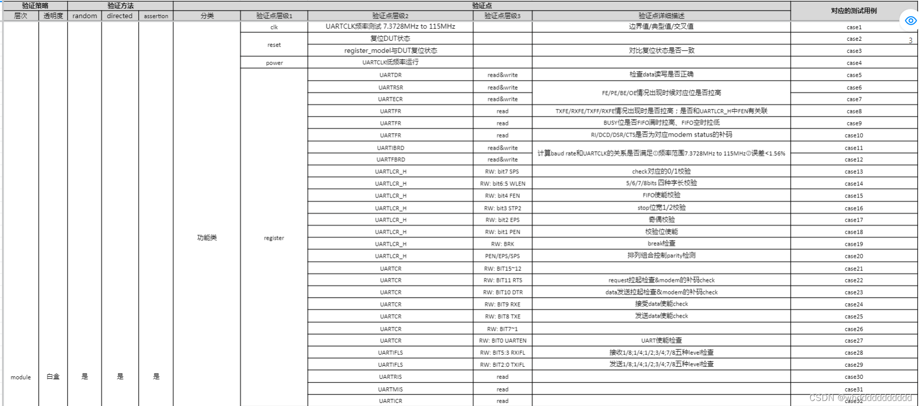 以上就是笑点低豌豆最近收集整理的关于UART项目验证(三) 验证策略和验证点提取1.1 uart 模块验证流程1.2 uart 模块及验证策略和验证方法1.3 提取验证功能点的全部内容,更多相关UART项目验证(三)内容请搜索靠谱客的其他文章。