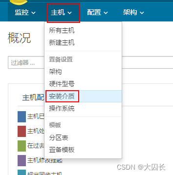 点击主机à安装介质