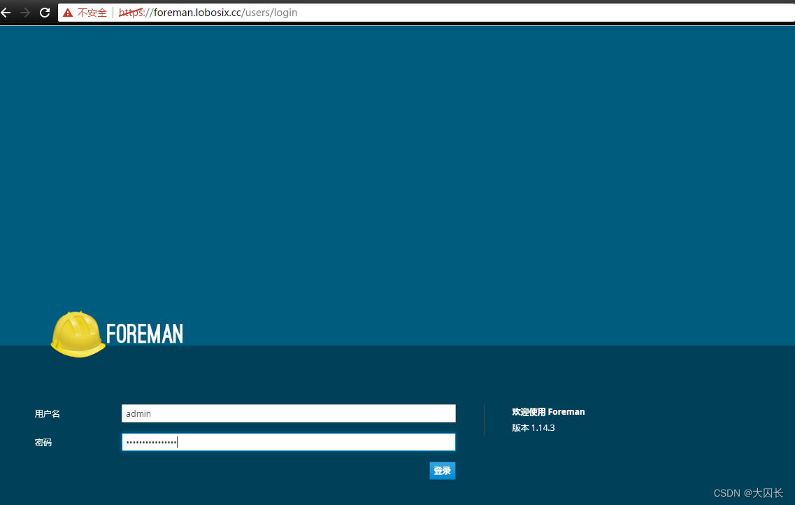 根据上一步中的地址和用户名密码登录Foreman