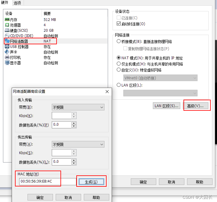 依次如下图生成MAC地址,复制,并确定