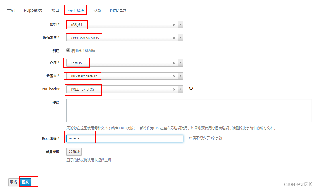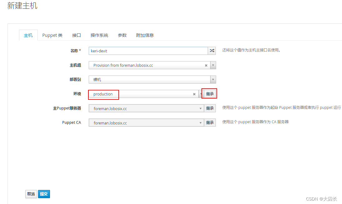 在Foreman的接口编辑中输入MAC和IPv4地址,其他默认,点击完成