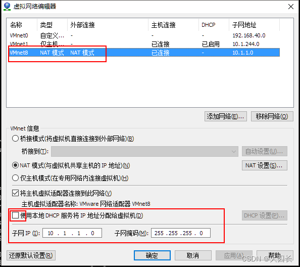 关闭VMWare NAT的DHCP分配