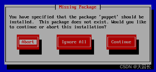 有一些在Kickstart中没有的软件,我们直接忽略就好,实际在生产环境中需要自己定义安装镜像和kickstart模板,添加需要的源和安装包