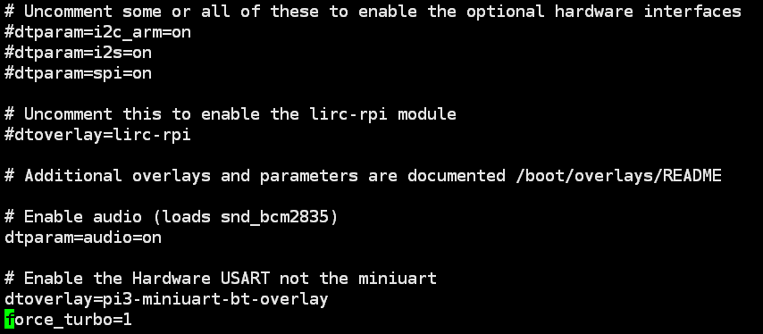 dtoverlay=pi3-miniuart-bt-overlay force_turbo=1