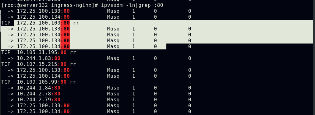 ##查看ingress-controller控制器的运行及ipvs调度策略