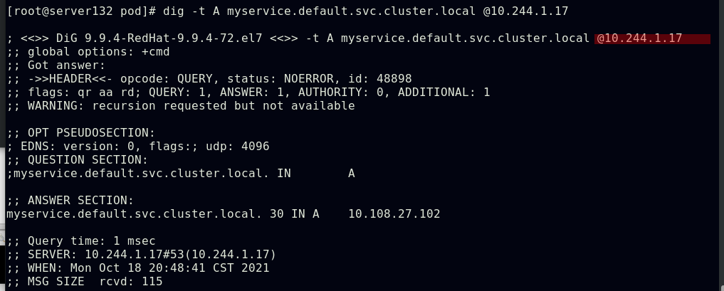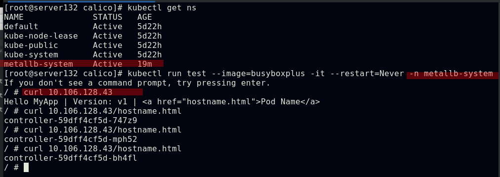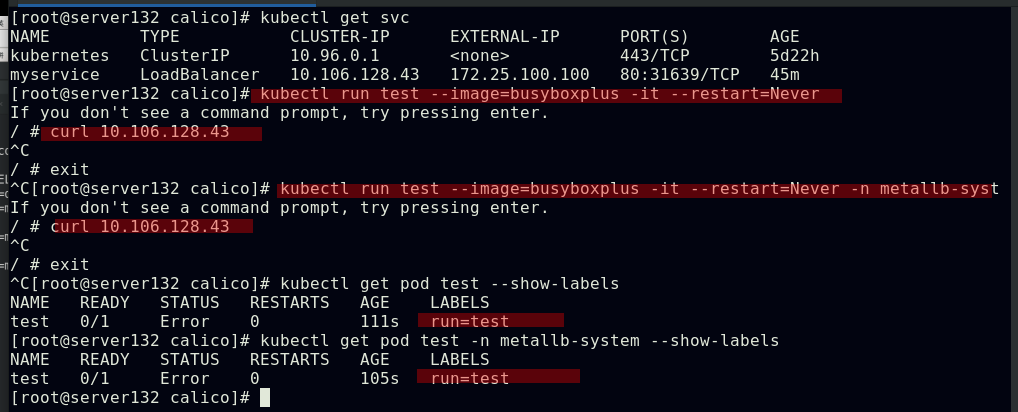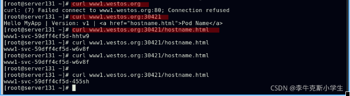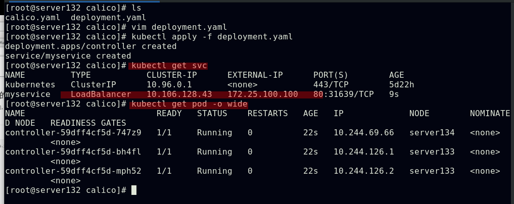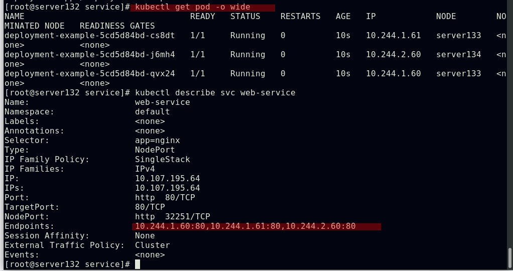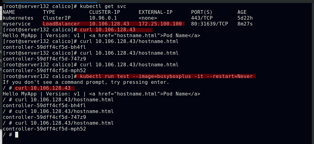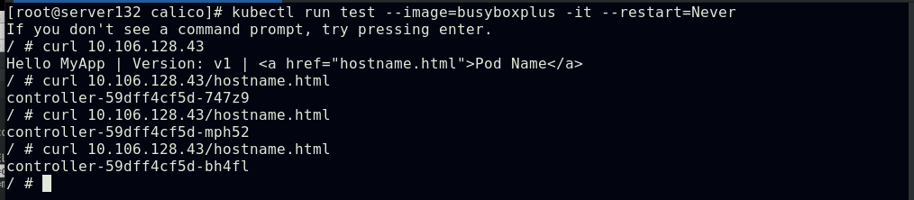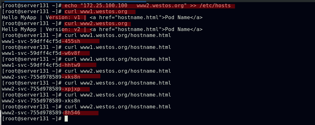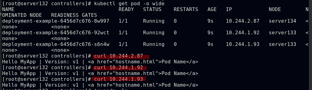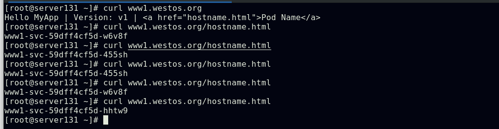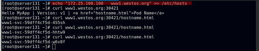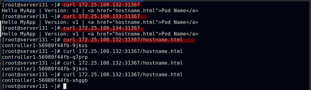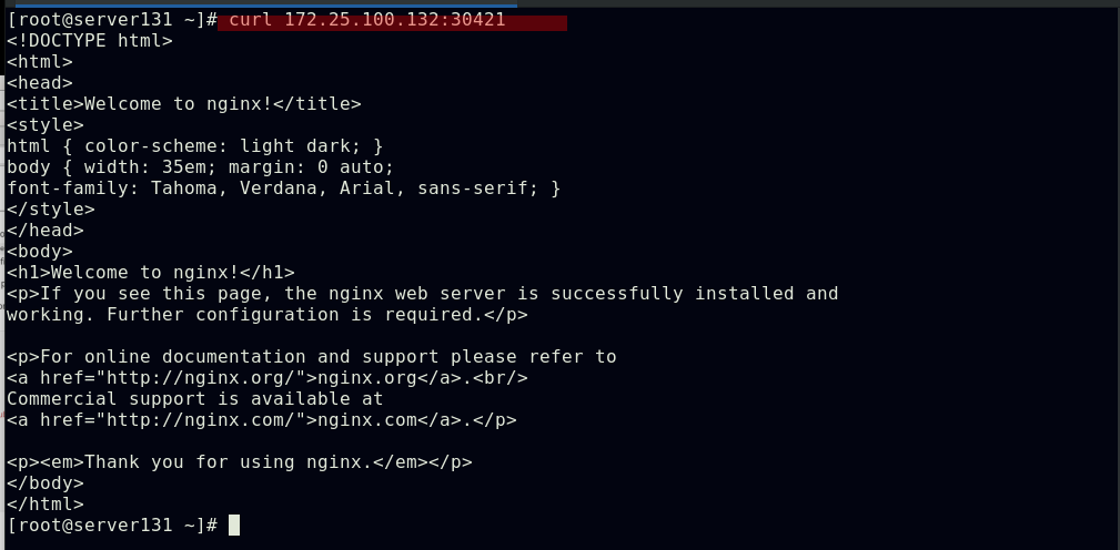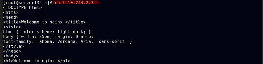 ##集群内部任意节点可以访问Pod,但集群外部无法直接访问(server131主机为仓库主机,不属于集群)
