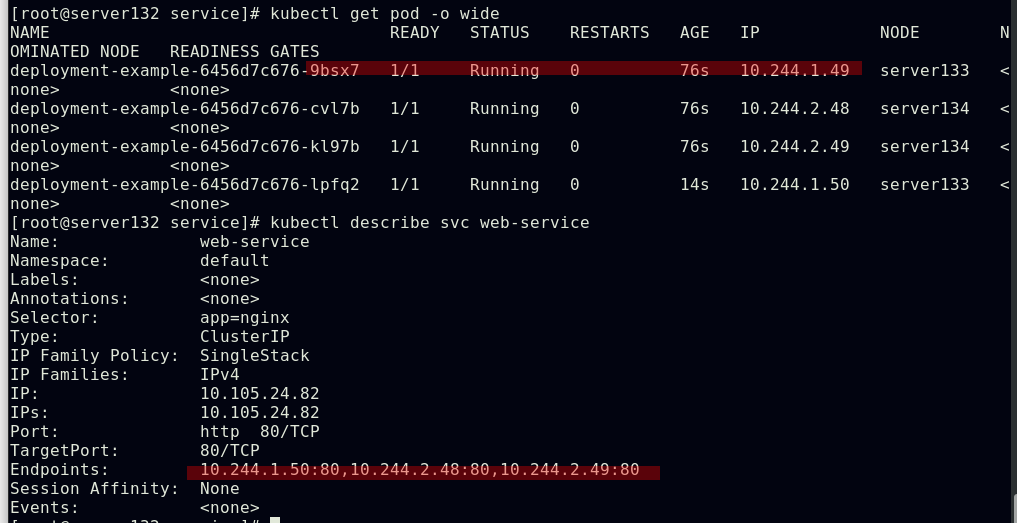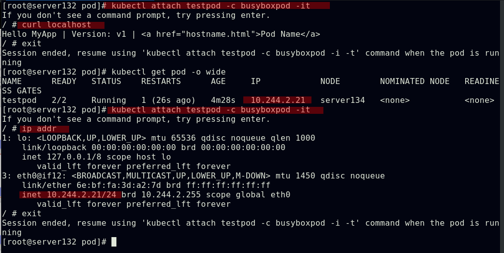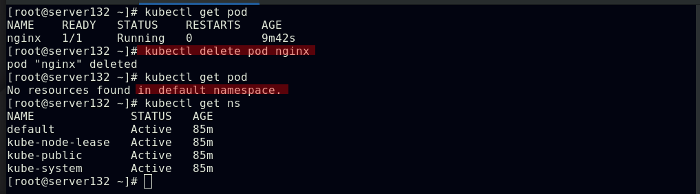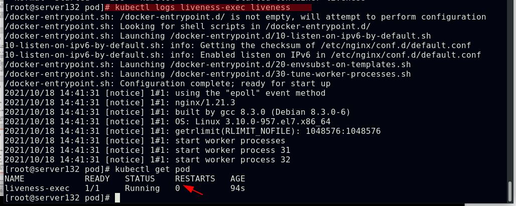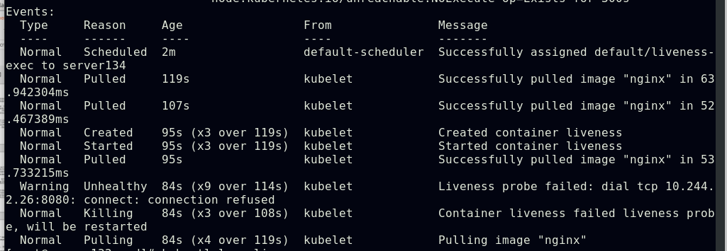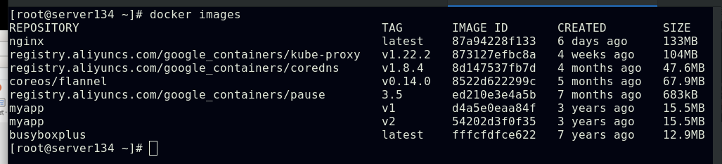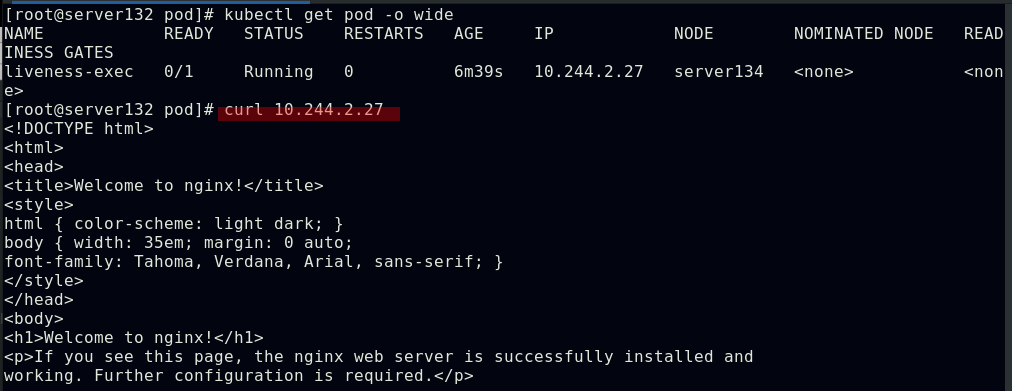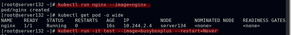 ##由上图知道此pod指派给了server134主机,即在此主机上拉取了nginx镜像(确保自己搭建的仓库中有镜像)