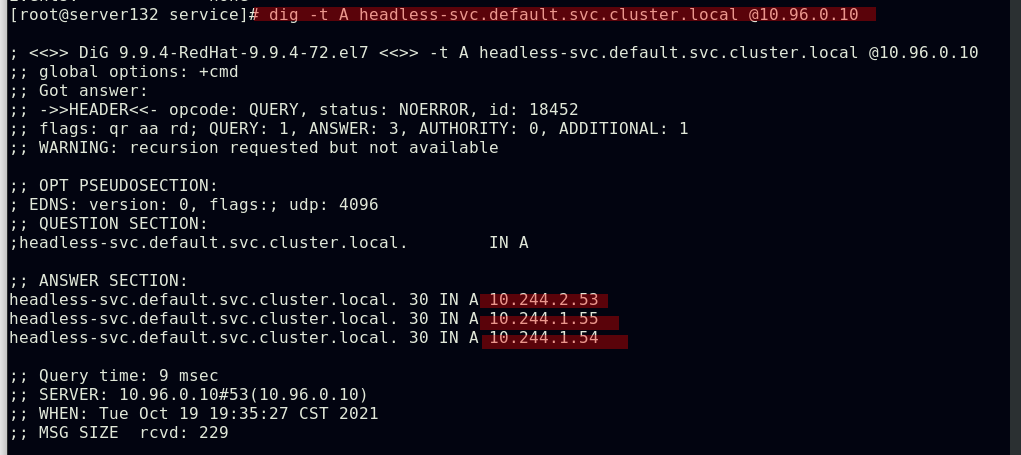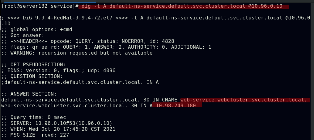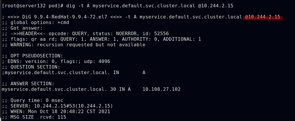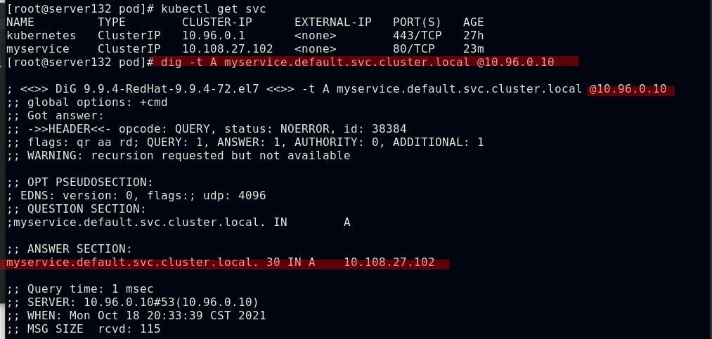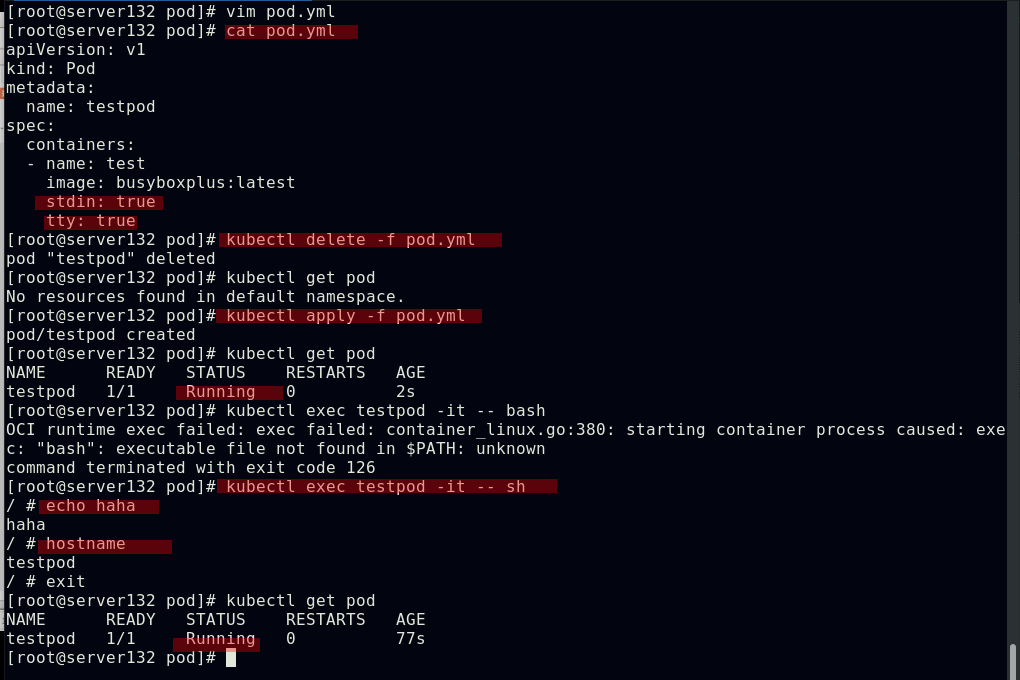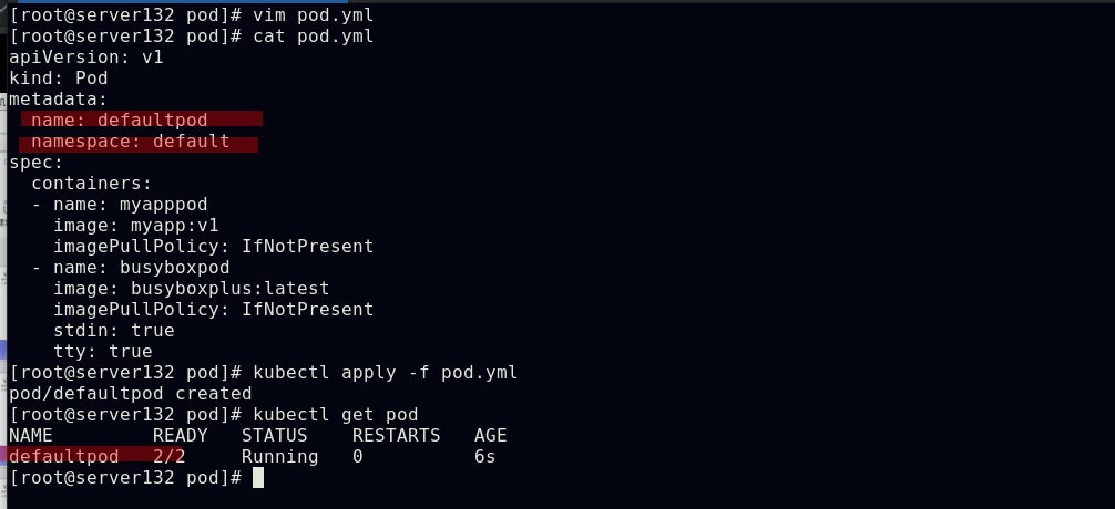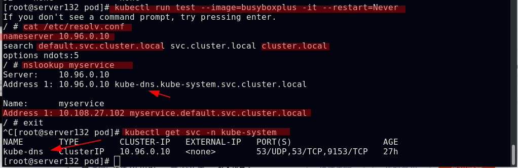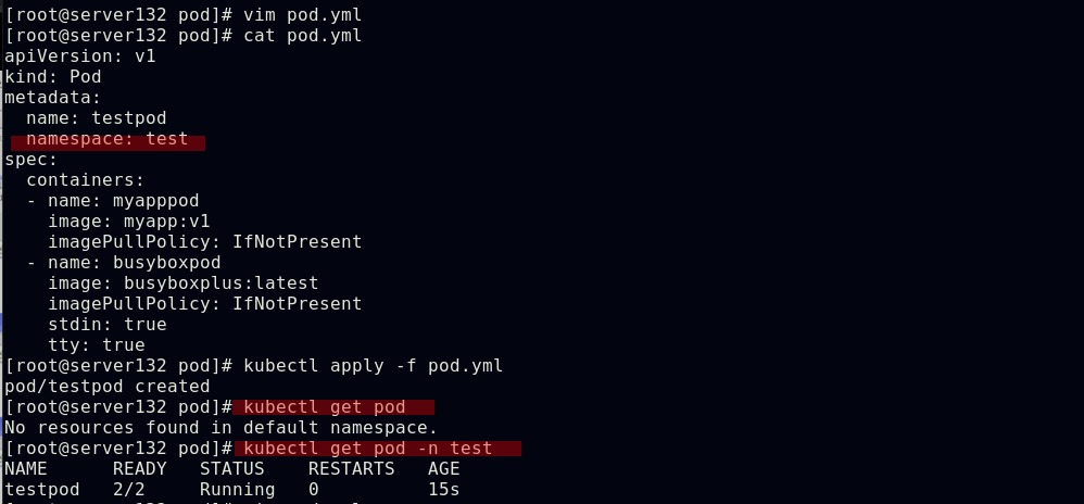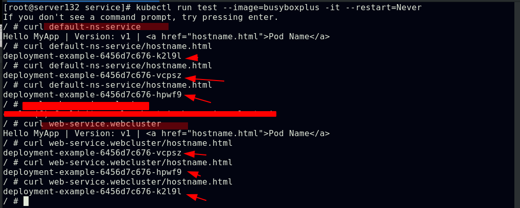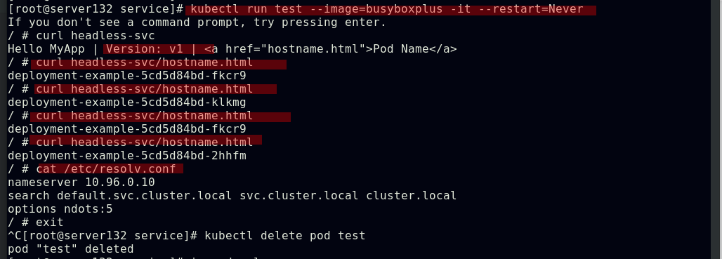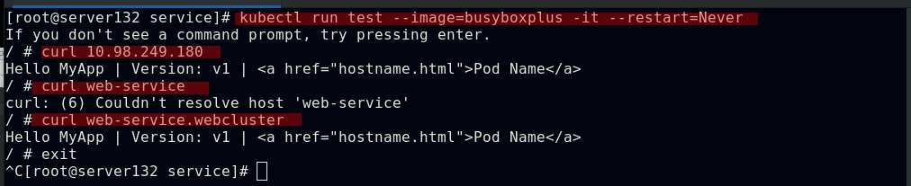 ##同一namespace下的不同pod可以直接访问,--restart=Never表示pod退出后不让其此自动重启,默认的pod重启策略为always