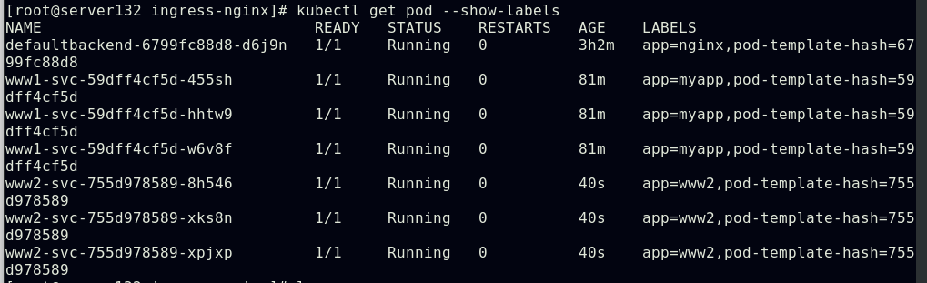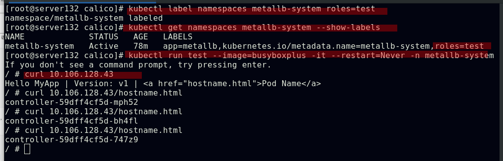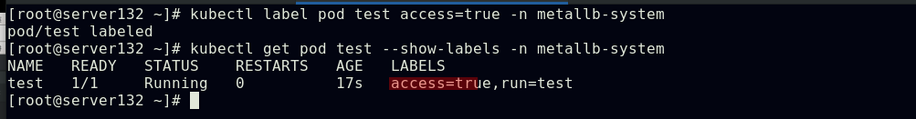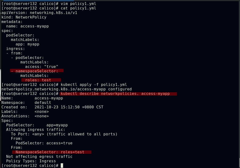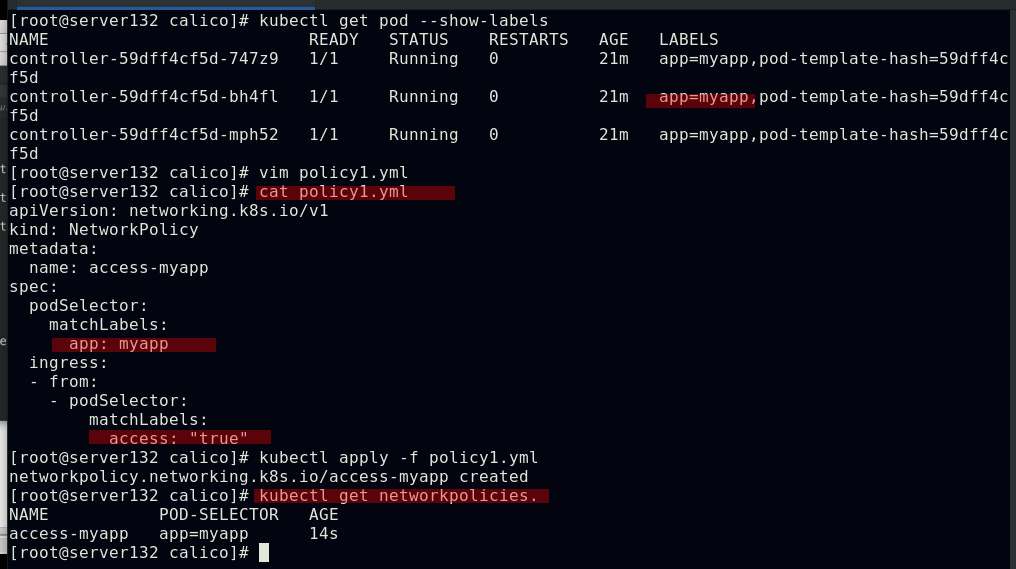 ##对命名空间添加策略文件中指定的标签后,在此命名空间下运行的pod即可访问隔离的pod