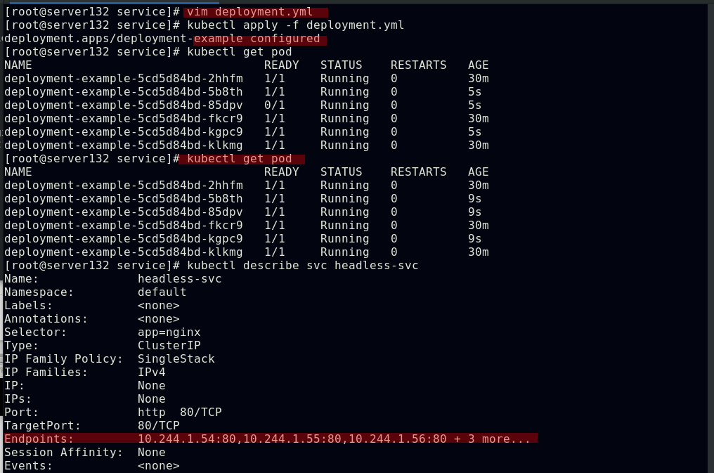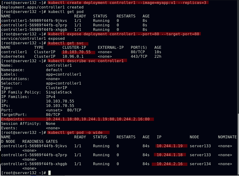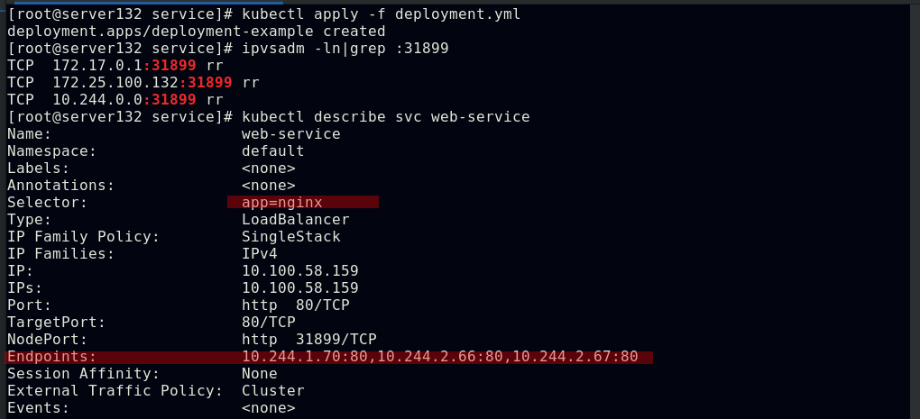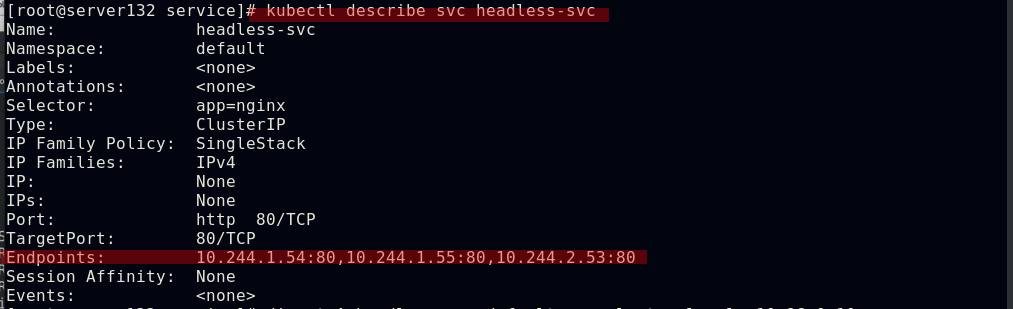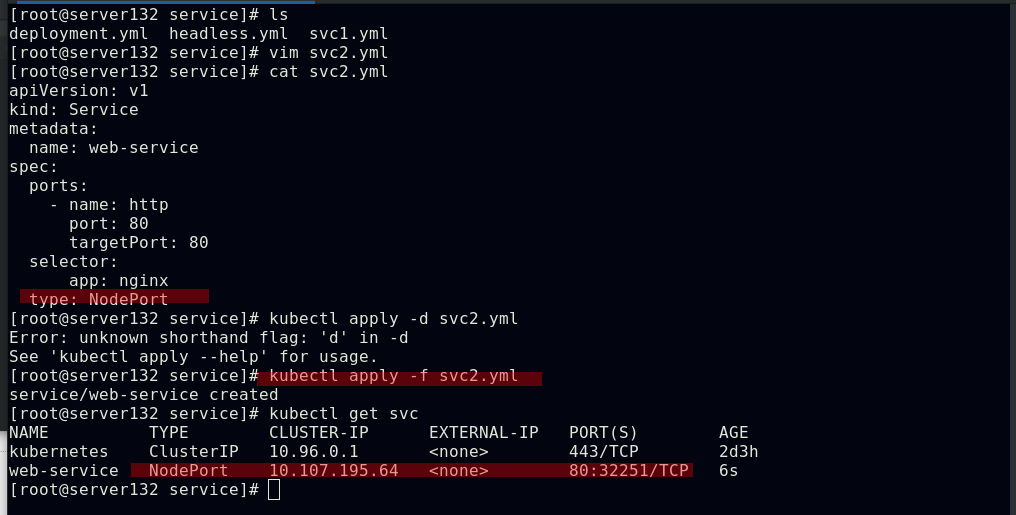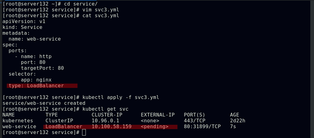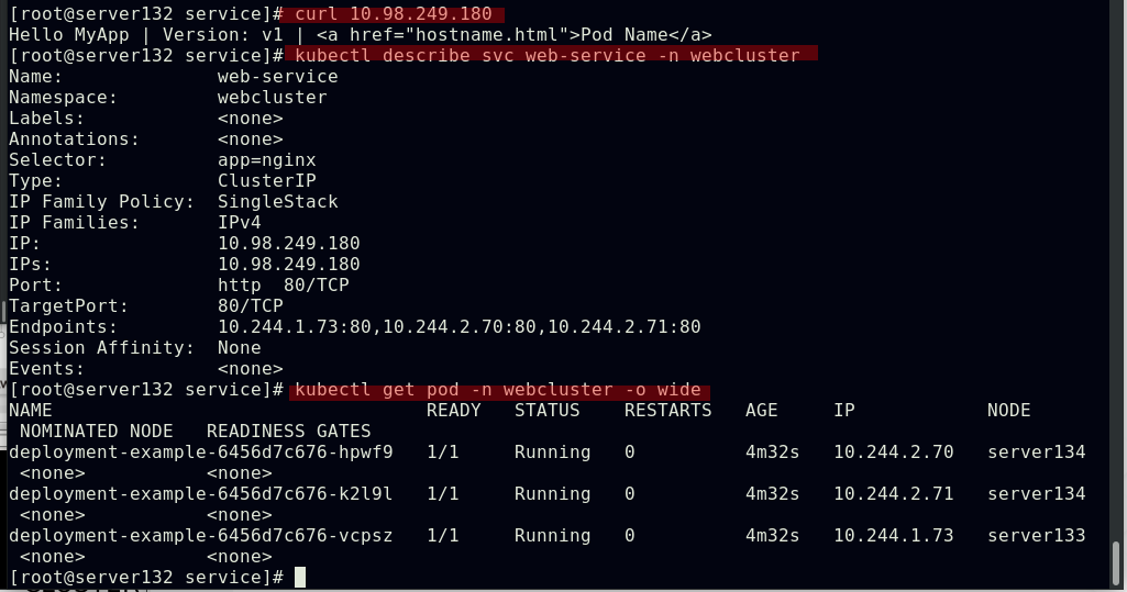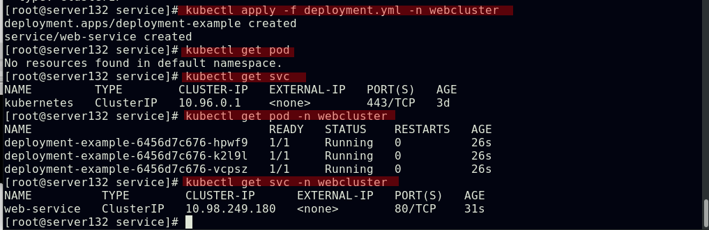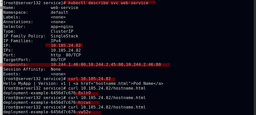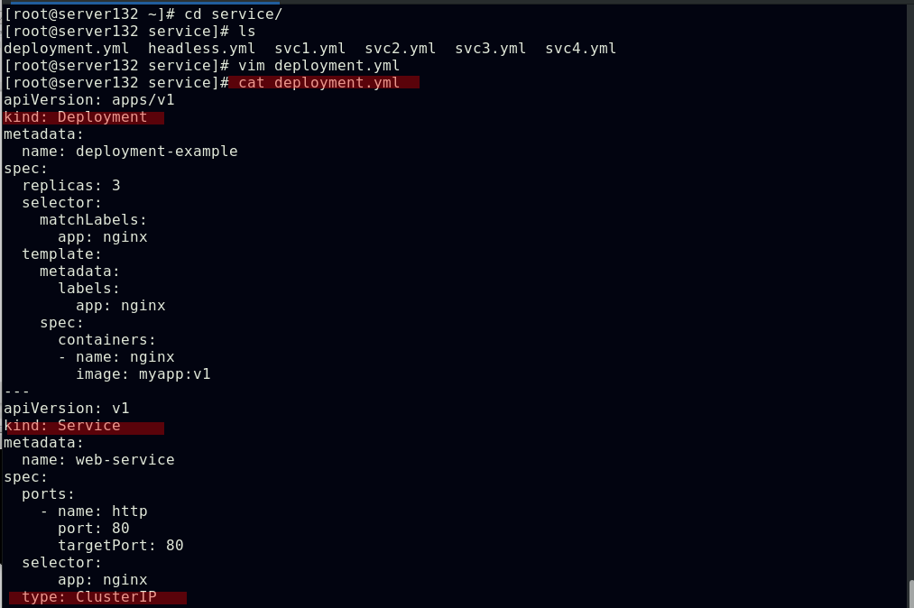 ##创建service,此时pod客户端可以通过service的名称访问后端的三个Pod;ClusterIP: 默认的service类型,会自动分配到一个仅集群内部可以访问的虚拟IP