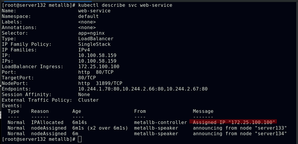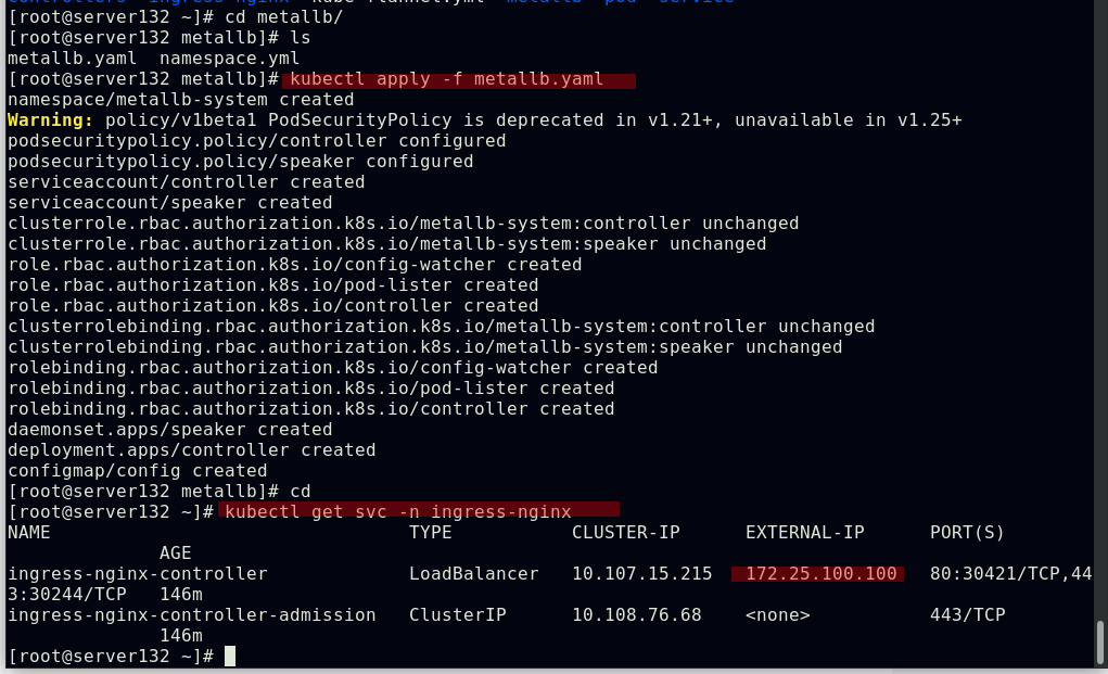 结合我们之前实验中做过的metallb在裸金属环境下为此ingress-controller服务分配一个IP
