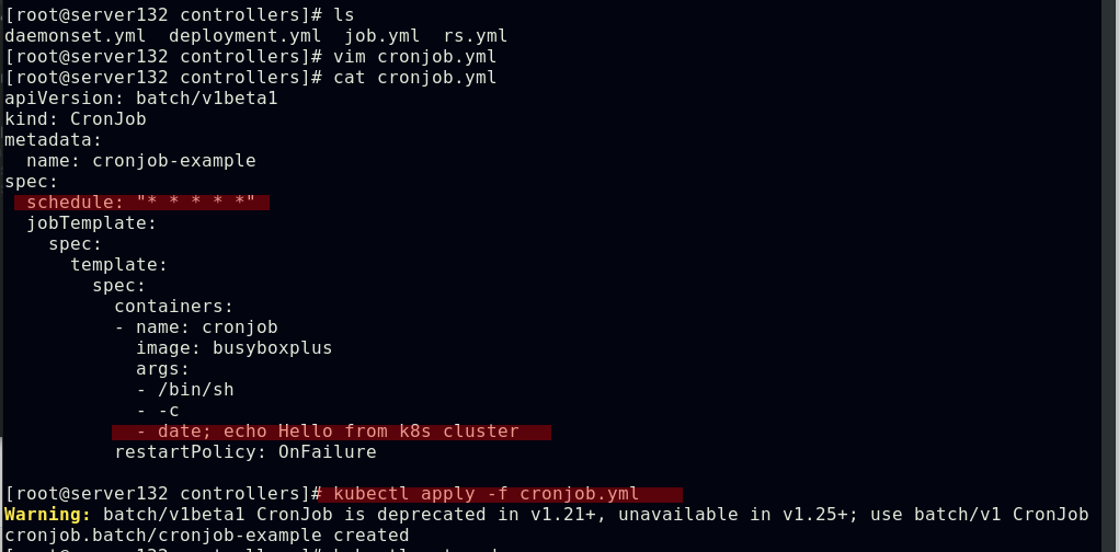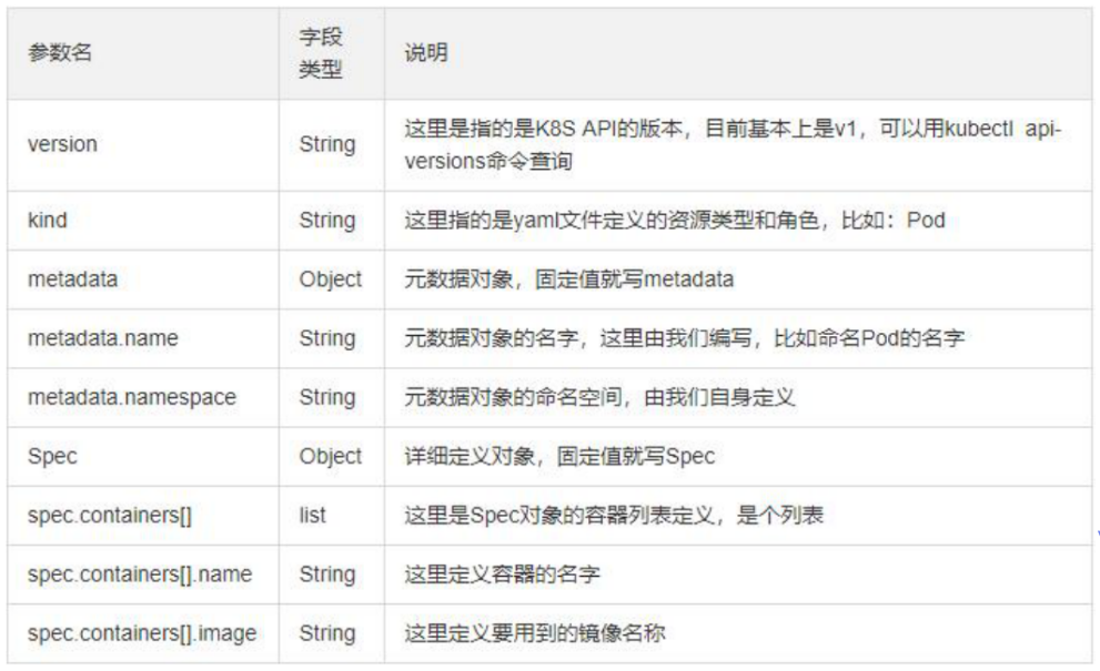 kind:标记创建的资源类型,k8s主要支持以下资源类别:Pod、ReplicaSet、Deployment、StatefulSet、DaemonSet、Job、Cronjob