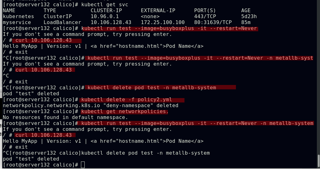 ##此时具有指定标签的pod被隔离,未拥有策略文件中定义的标签的pod无法访问被隔离的pod