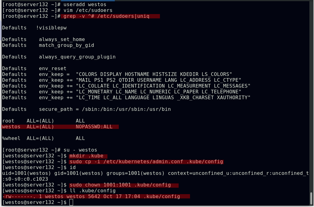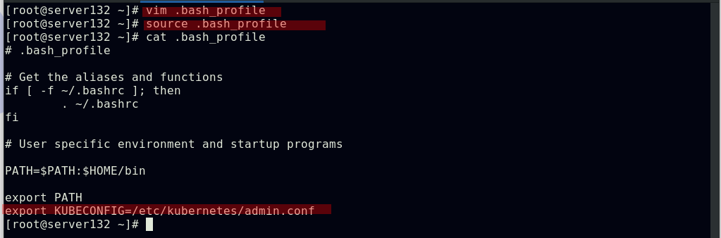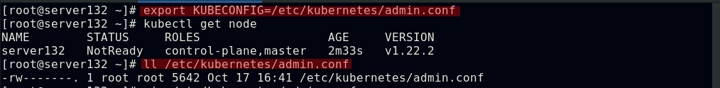 ##指定kube配置文件启动集群,此条命令出现在初始化集群时的输出中;也可在文件中配置此环境变量,以免重启主机时每次手动声明