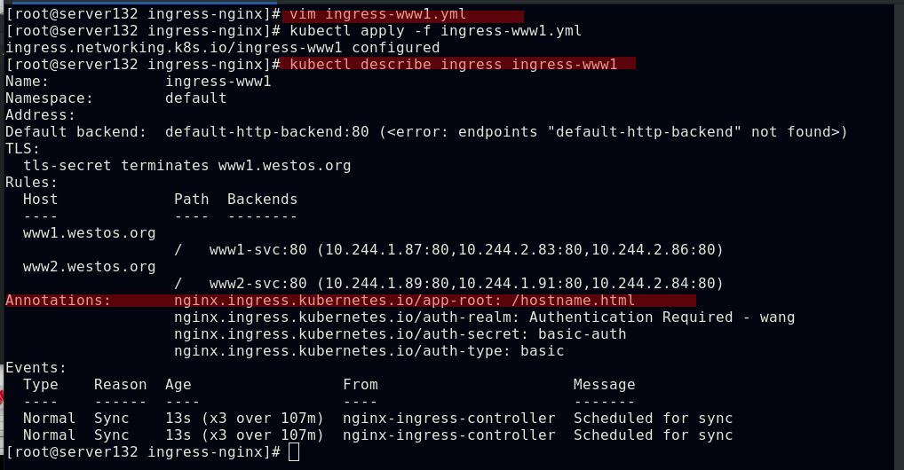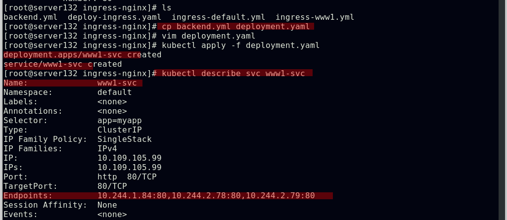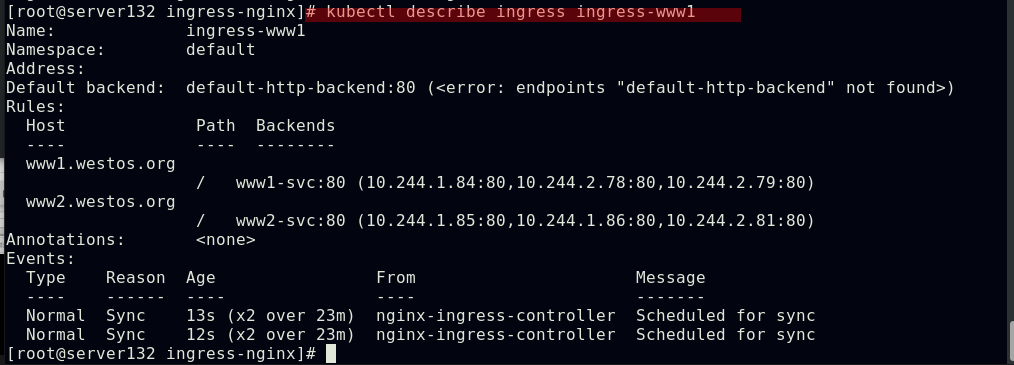 创建ingress资源文件中指定的服务和后端pod