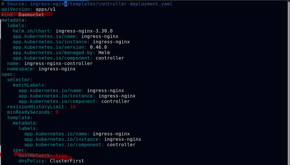 ##配置ingress-controller的类型为DaemonSet,使用hostNetwork网络模式