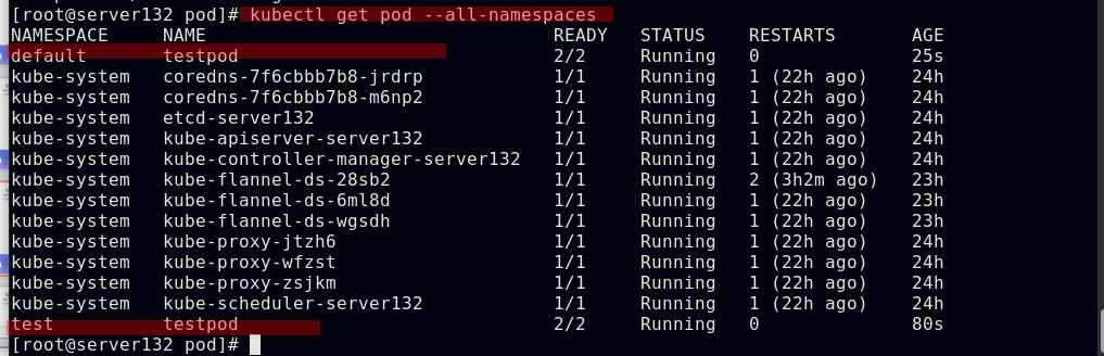 ##删除pod,查看所有namespace