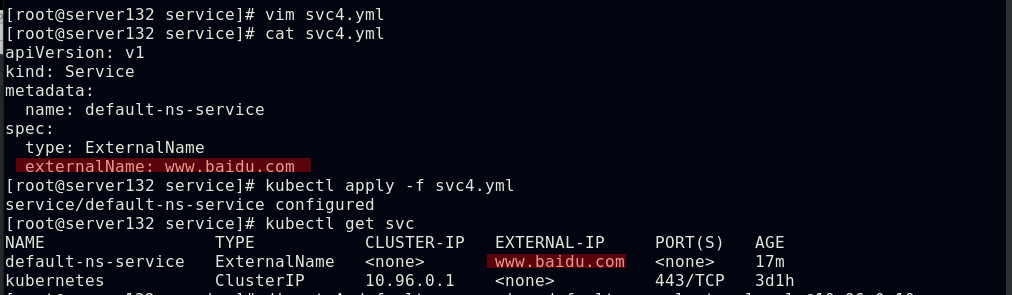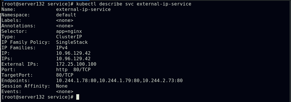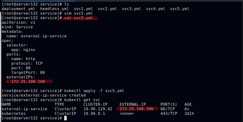 ##创建实验素材,所需的service及其后端pod;此处的externalIP依旧是利用之前实验中创建的metallb功能生成的