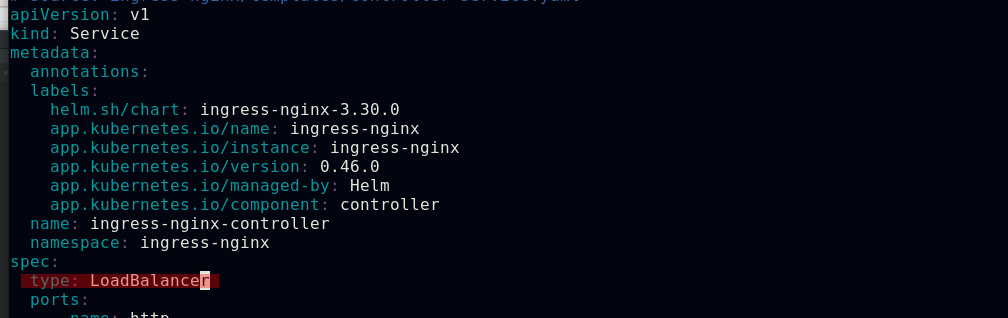 ingress-nginx控制器服务的默认类型是NodePort,我们还可以将它的类型配置为LoadBalancer