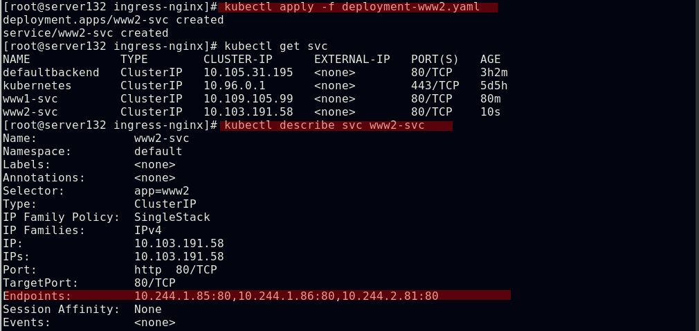 应用资源文件,会创建ingree-nginx命名空间下的三个pod和两个服务