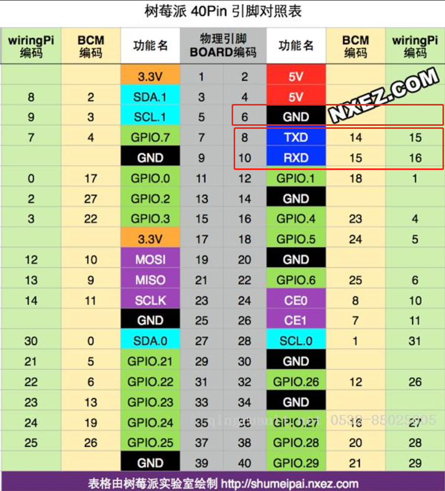 由上图可以看出,我们使用的引脚是wirningPi的15/16脚分别作为Tx/Rx(当然也要连GND)。