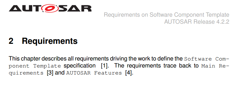 继续学习AUTOSAR的文档,看一下《AUTOSAR_RS_SoftwareComponentTemplate》,这个应该开始涉及到应用软件设计了,估计会有一些RTE相关的内容。