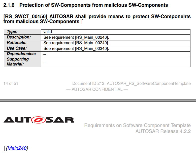 AUTOSAR应提供保护软件组件免受恶意软件组件攻击的方法