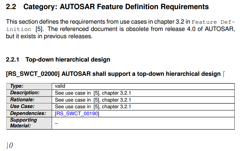 本节定义了功能定义[5]中第3.2章中用例的需求。引用的文档在AUTOSAR4.0版中已过时,但它存在于以前的版本中。