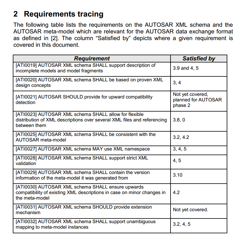 • 第 5 章更详细地描述了模型持久性规则。规则之间的关系以图形方式说明。注意:本文档包含用于说明 XML 模型持久性规则的示例。一些示例从 AUTOSAR 元模型中取出并进行了简化以提高可读性。 因此,这些示例可能与最新版本的 AUTOSAR 元模型不同步。