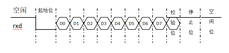 在进行数据传输时前面都有一位起始位(低电平),然后紧接着是4~8位数据位,然后是一位校验位(可以是奇校验,也可以是偶校验),最后是一位或一位半或二位停止位(高电平),停止位后面是不定长的空闲位(高电平)。实际传输时每一位的信号宽度与波特率有关,波特率越高,宽度越小,在进行传输之前,双方一定要使用同一个波特率设置。