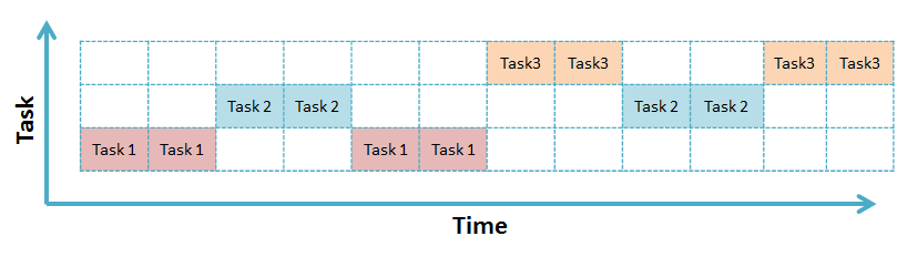 RTOS里面的任务(Task),从宏观上看,是独立的,他们各自干各的,但是,从微观上(虽然有点不恰当,姑且用宏观/微观的概念来解释)不是,对于单核的CPU,这些task可以说是“分时复用”的,也就是说,CPU一会运行一下task1,一会又切换到task2去运行,一会又切换到task3……而CPU运行很快,让你感觉不到它在切换和停留,感觉起来各个task就是各自干各自的。