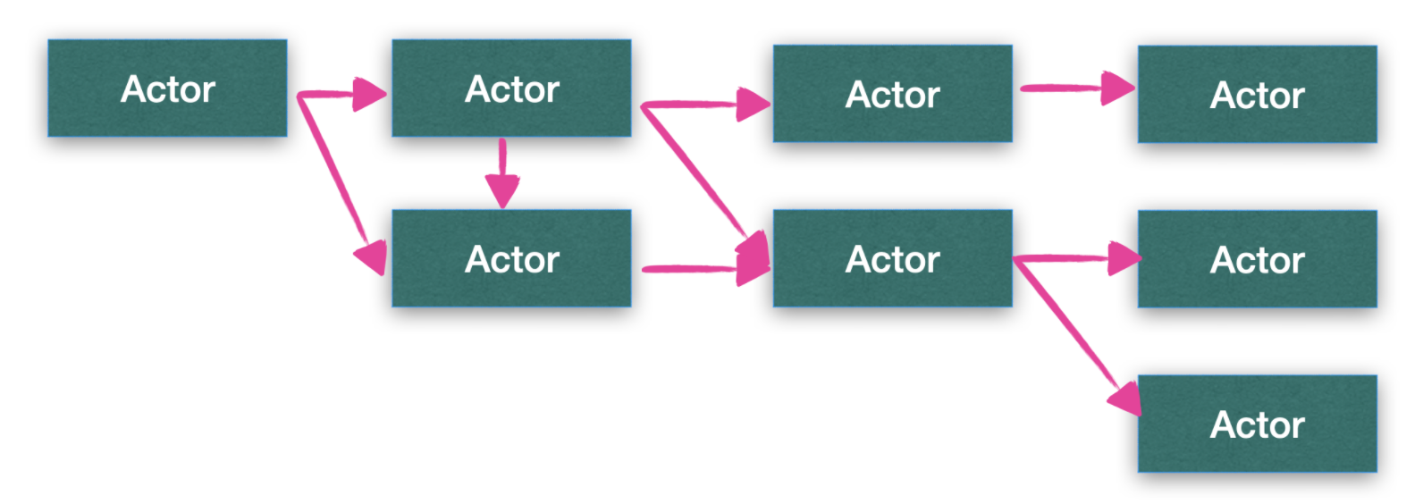 在 Actor 模型中,每一个 Actor 其实就是一个 Worker, 每一个 Actor 都能够处理任务。