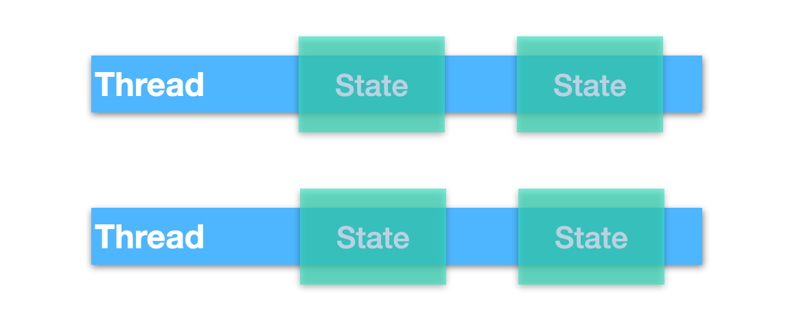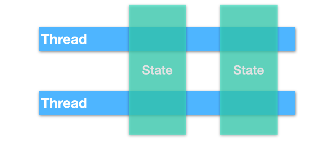 并发模型的一个重要的方面是,线程是否应该共享状态,是具有共享状态还是独立状态。共享状态也就意味着在不同线程之间共享某些状态