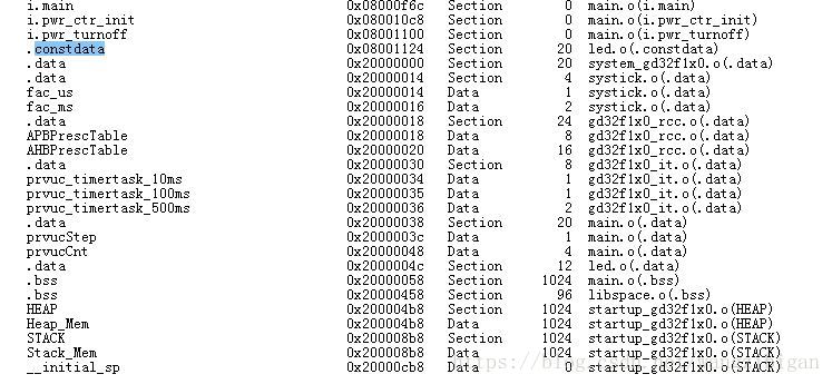 上图是符号表中Local Symbols的一部分。可以看到另外一些变量符号,还能看到,constdata(常量)是保持着flash里(地址为0x08XX XXXX)。