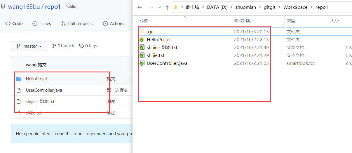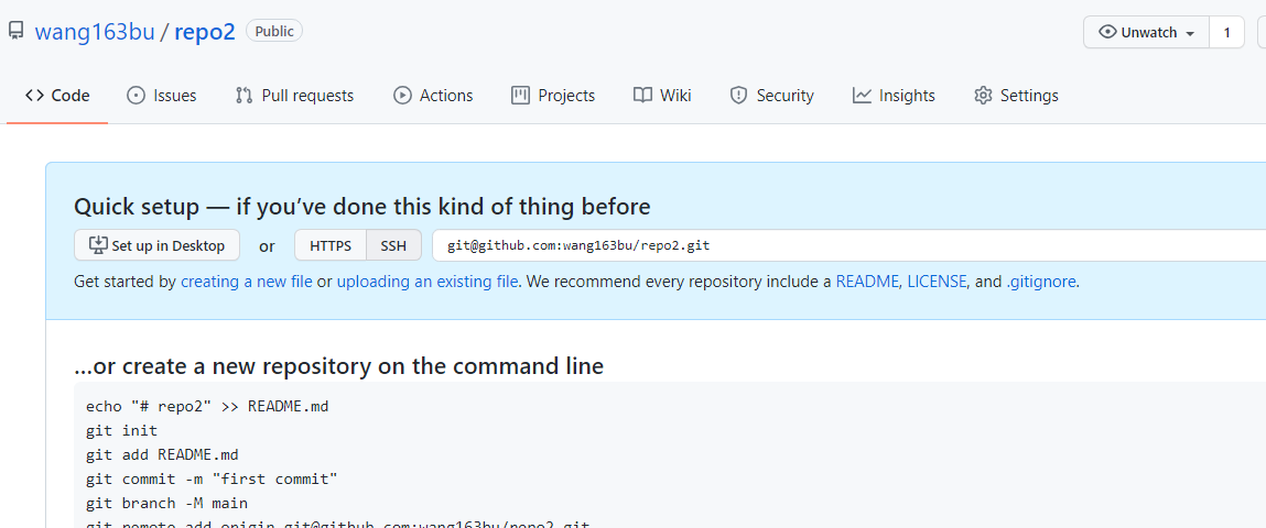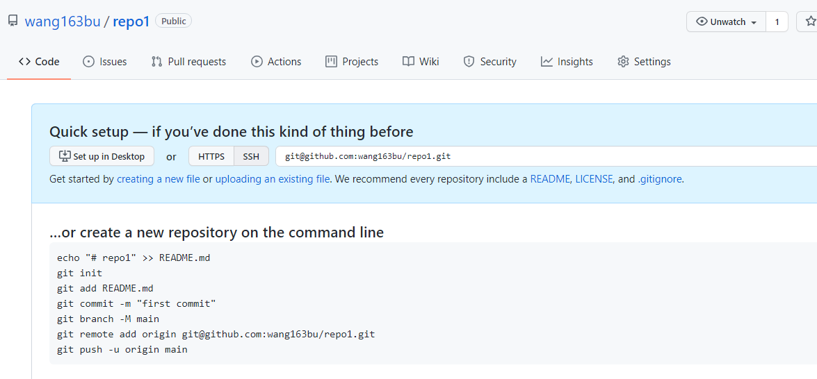 dell@DESKTOP-96M0AUS MINGW64 /d/zhuomian/gitgit/WorkSpace/repo1 (master) # $ git remote add origin git@github.com:wang163bu/repo1.git dell@DESKTOP-96M0AUS MINGW64 /d/zhuomian/gitgit/WorkSpace/repo1 (master) # $ git push -u origin master The authenticity of host 'github.com (20.205.243.166)' can't be established. RSA key fingerprint is SHA256:nThbg6kXUpJWGl7E1IGOCspRomTxdCARLviKw6E5SY8. Are you sure you want to continue connecting (yes/no/[fingerprint])?# yes Warning: Permanently added 'github.com,20.205.243.166' (RSA) to the list of known hosts. Enumerating objects: 51, done. Counting objects: 100% (51/51), done. Delta compression using up to 8 threads Compressing objects: 100% (39/39), done. Writing objects: 100% (51/51), 221.39 KiB | 4.02 MiB/s, done. Total 51 (delta 8), reused 0 (delta 0), pack-reused 0 remote: Resolving deltas: 100% (8/8), done. To github.com:wang163bu/repo1.git * [new branch] master -> master Branch 'master' set up to track remote branch 'master' from 'origin'. dell@DESKTOP-96M0AUS MINGW64 /d/zhuomian/gitgit/WorkSpace/repo1 (master) $