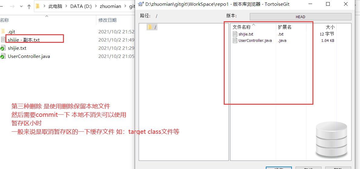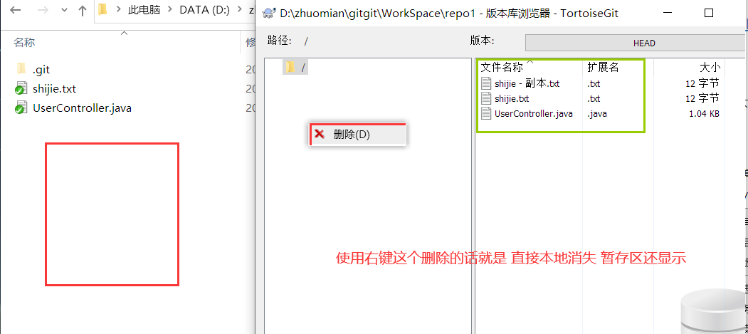 - 第一个删除的话就是在本地删除之后 需要提交一下 暂存区才没有 本地也会删除