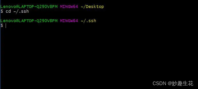 打开终端(git)进入.ssh目录 输入 cd ~/.ssh