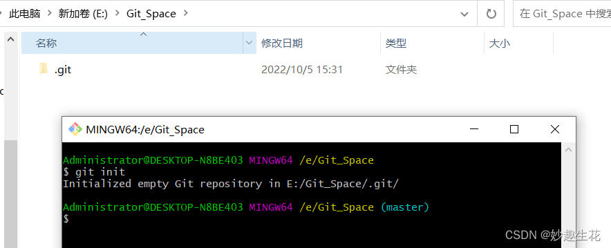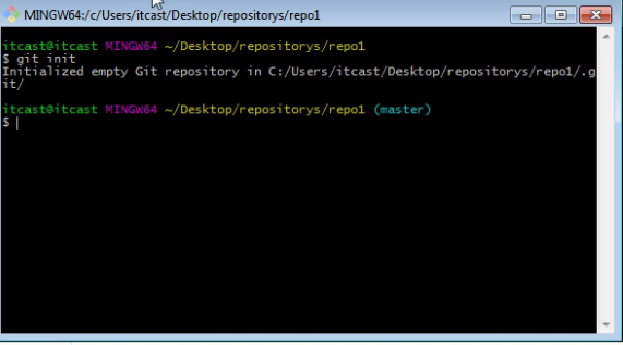 鼠标右键Git Bash Here 输入命令 git init 即可创建第一个Git文件