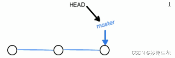 在我们每次的提交,Git都把它们串成一条时间线,这条时间线就是一个分支。截止到目前,只有一条时间线,在Git里,这个分支叫主分支,即 master分支。HEAD指针严格来说不是指向提交,而是指向master,master才是指向提交的,所以,HEAD指向的就是当前分支。