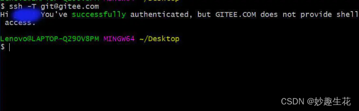 当终端提示welcome to Gitee.com,yourname!表示链接成功