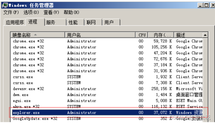 找到里面的explorer.exe进程,直接结束进程,重启电脑,就可以看到图标了。