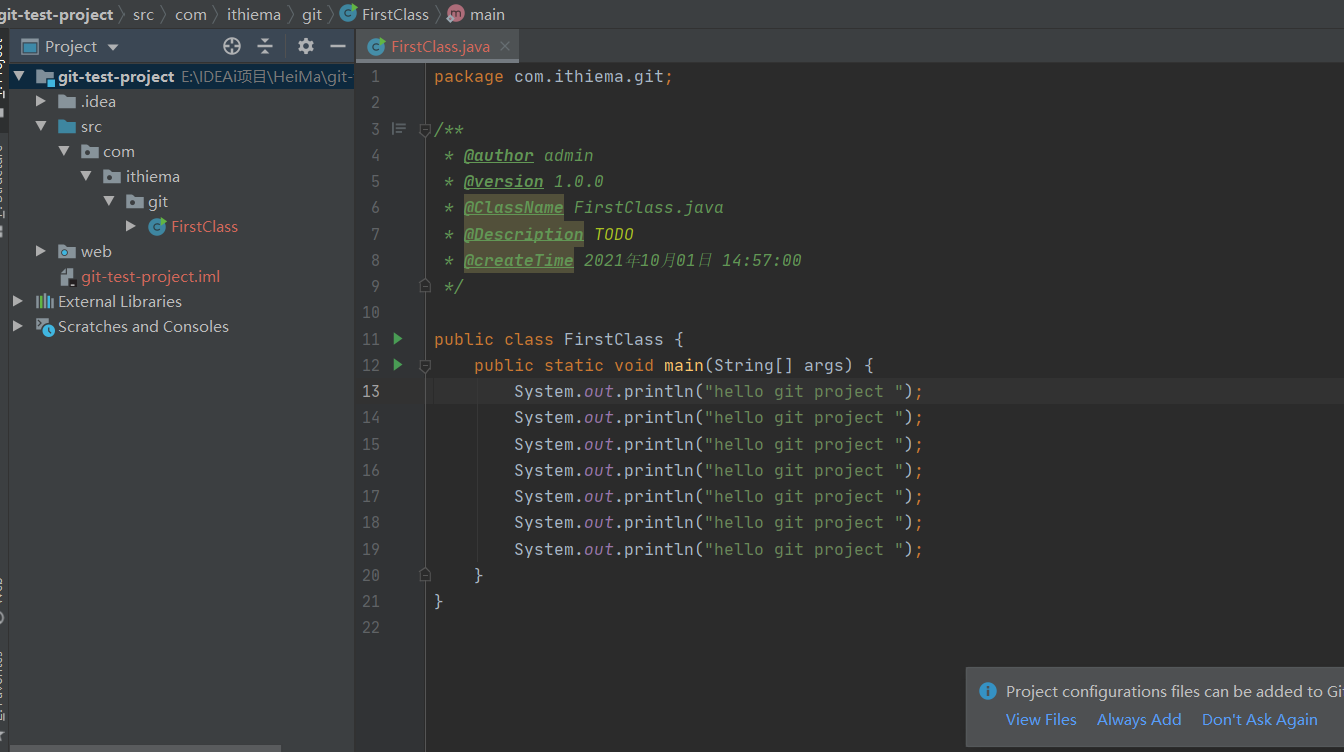 思路: 1.首先准备一个正常的idea项目工程模拟场景 2.将所有的文件 add添加到暂存区 【不要提交】 3.将.idea out或者target文件清理忽略【仅暂存区】 4.提交一个.giitone文件即可 5.直接当前文件目录 ctrl + A 提交即可 5.版本库浏览