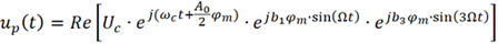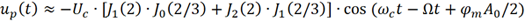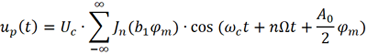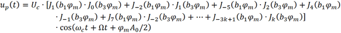可以看出,当只考虑调制信号的DC和基波时,已调信号up (t)将包括ωc及ωc+nΩ(n为整数) 等众多频率分量。
