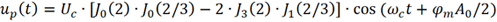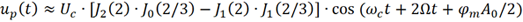 根据第一类贝塞尔函数,上式计算得到的载波信号幅度非常微弱。