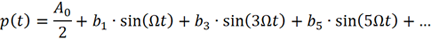 这意味着p(t) 只包含DC、基波及其奇次谐波,但阶数越高,谐波强度越弱。
