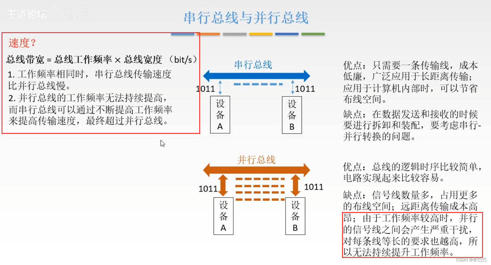 下面解释一下并行总线的速度并不一定高于串行总线的速度原因: